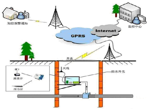 城市供水管网监测系统是水司供水调度管理系统的一个子系统,主要由自来水厂调度中心、通信平台、监测终端、压力变送器和流量仪表组成。