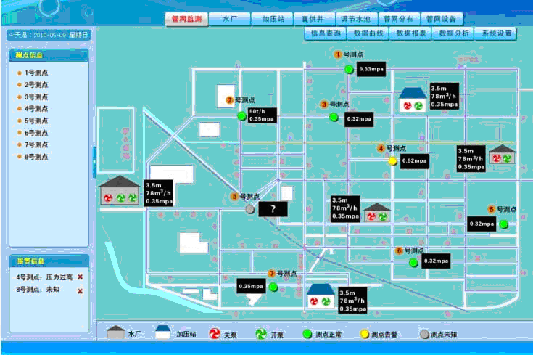 自来水厂调度中心负责对全市供水管网进行监测,具体功能如下: